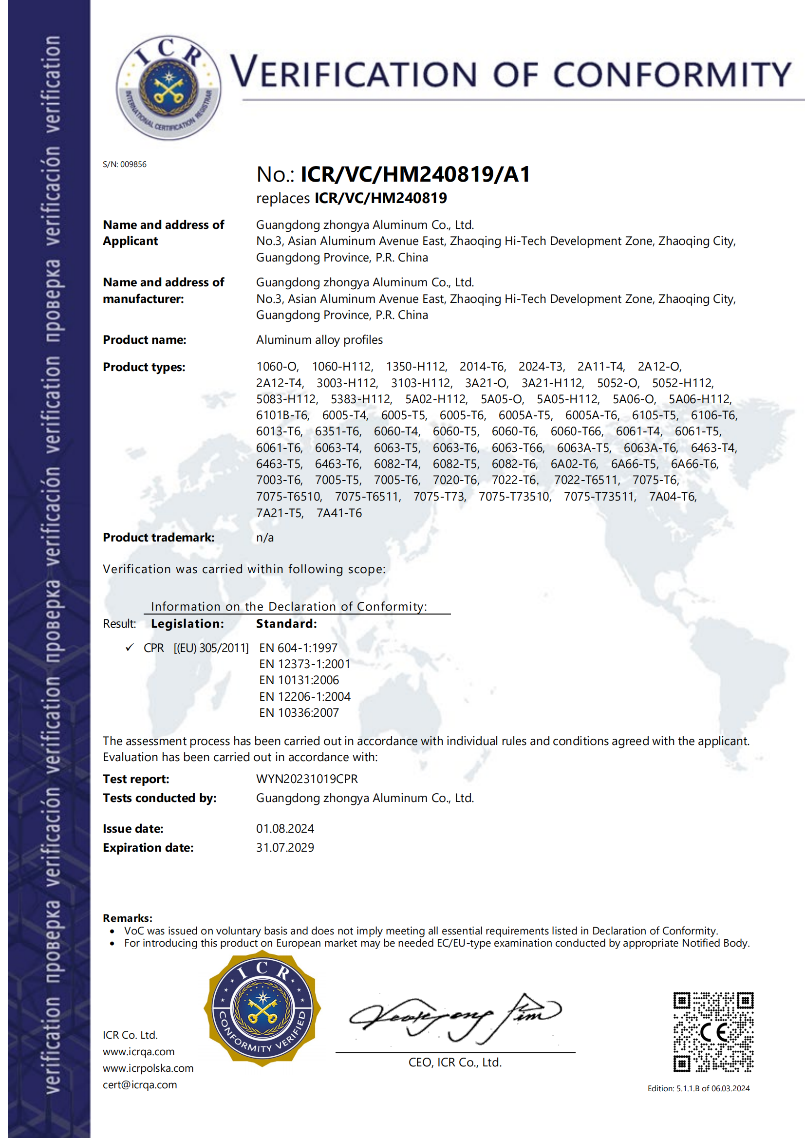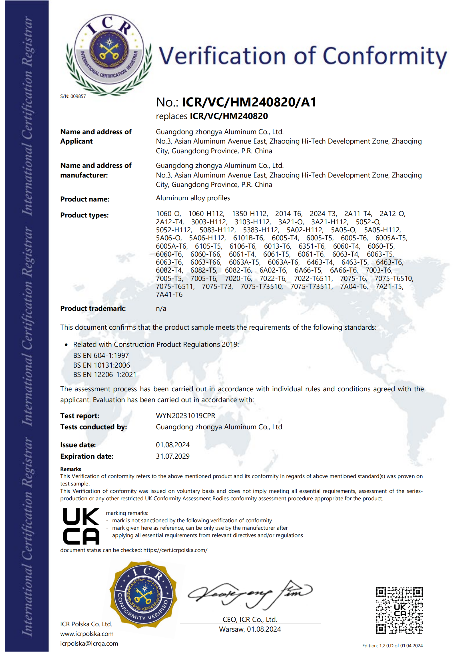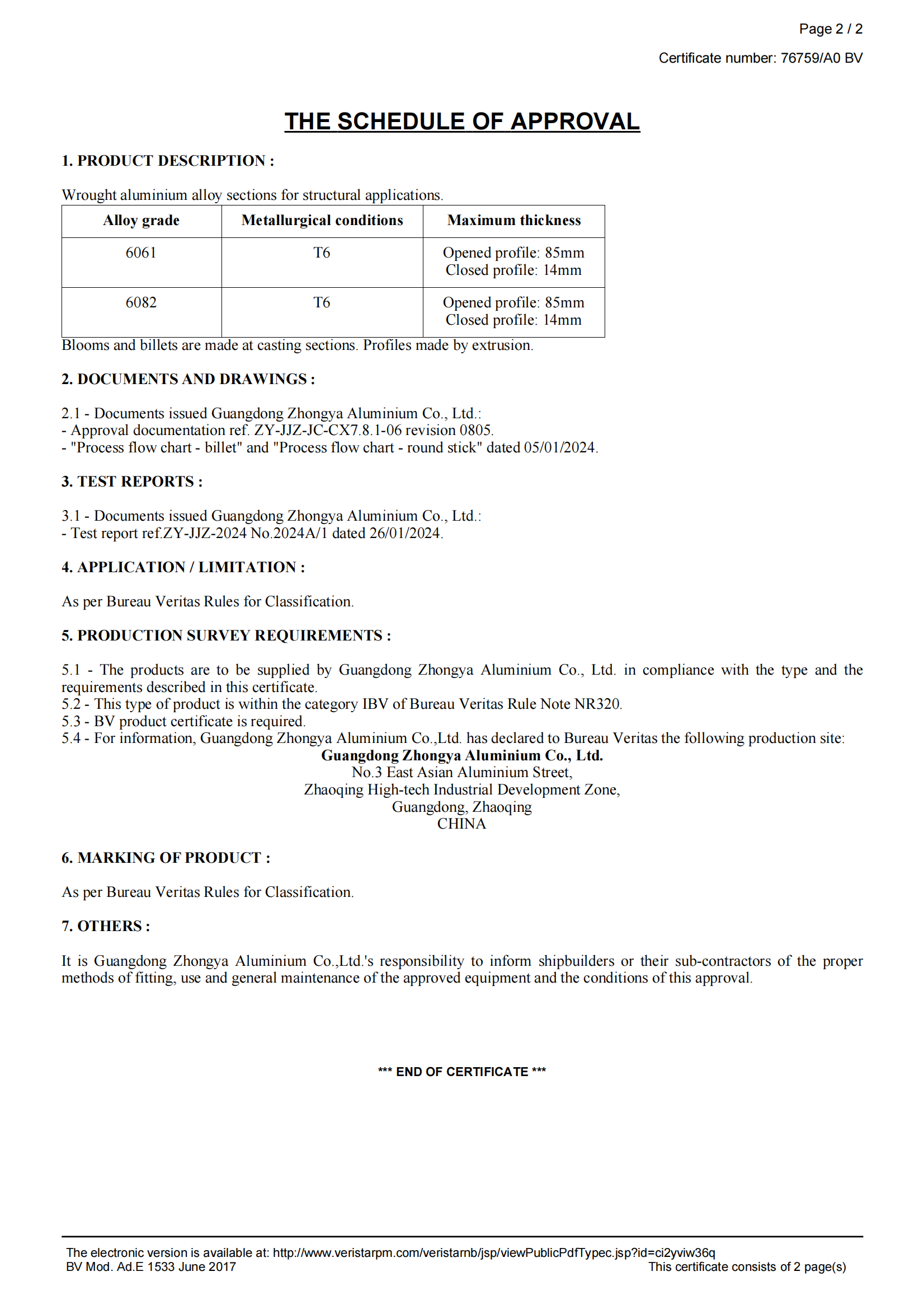 BV材料批準(zhǔn)證書 變形鋁2